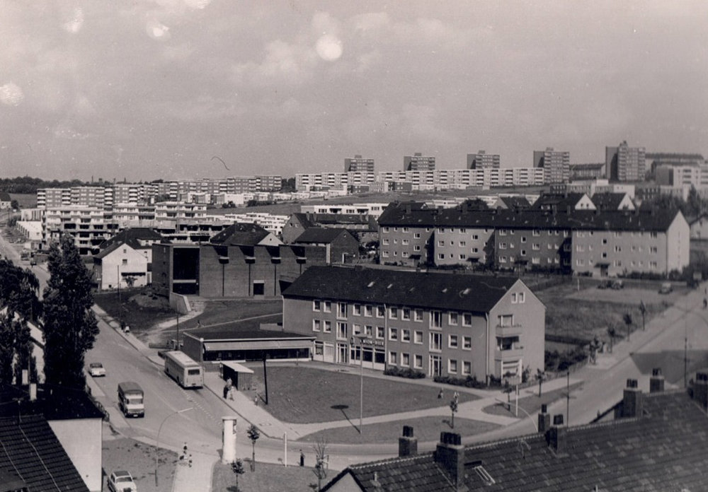 Dazu entstand ein Einkaufszentrum mit allem, was man zum täglichen Bedarf benötigt, Arztpraxen und einer Apotheke. Auch an die Kinder wurde gedacht. Ein großer Spielplatz entstand zentral hinter dem Einkaufszentrum und mehrere kleine Spielplätze in der Nähe von Mehrfamilienhäusern. Zudem entstand ein Schulzentrum mit Grund-, Haupt- und Realschule, sowie Sporthalle. In den 1990ern wurden die Haupt- und Realschule, trotz großer Proteste, auslaufen gelassen, um dort das Geschwister-Scholl-Gymnasium unterzubringen. Dieses musste, wegen einer neuen Schulstruktur, die Gebäude an der Poststraße für eine neue Gesamtschule räumen.