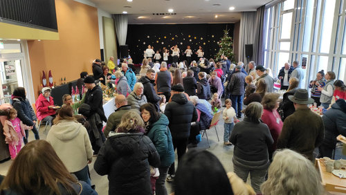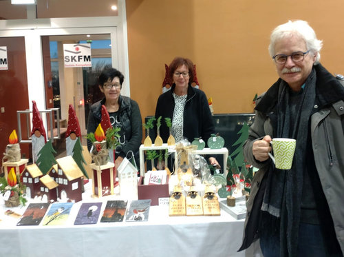 Im BiLo lief da schon das Programm. Es gab Stände einiger Birther mit allerlei interessanten selbsterstellten Artikeln für die Advents- und Weihnachtszeit. Es gab Kaffe und Kuchen, sowie kalte Getränke. Eine Popcorn-Maschine verbreitete ein wenig "Kirmesduft" in den Räumen. Draussen gab es Würstchen vom Grill, frisch gebackene Flammkuchen und unseren Glühwein oder Kakao. Natürlich auch ohne Alkohol.